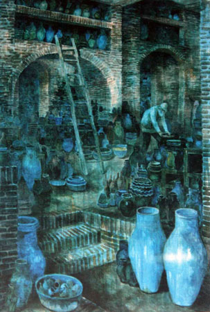 Pottery Workshop، Oil on Canvas, 135x195cm,1981
