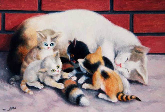 Kittens, Oil on Canvas, 25x35cm, 1991