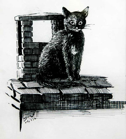 گربه سیاه روی دیوار - مرکب - چینی و قلم - دماوند